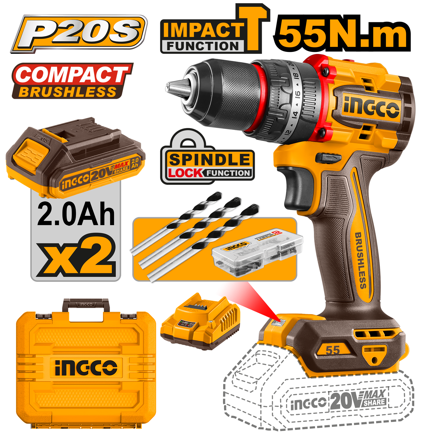 TALADRO DE IMPACTO BRUSHLESS 20V INGCO CIDLI20558E