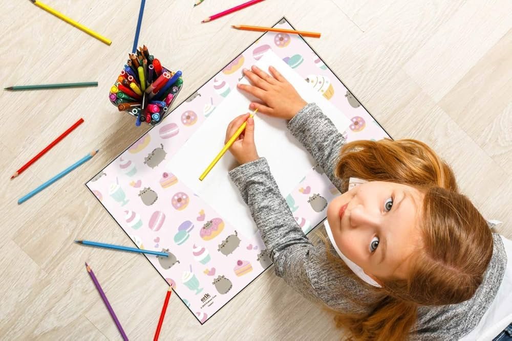 Recomendado como tapete de escritorio para estudiantes y para home office: úsalo como vade para escribir, hacer deberes, manualidades o dibujo. También es una buena opción para proteger mesas de estudio y escritorios infantiles durante la vuelta al cole, manteniendo la superficie en mejor estado y aportando un toque decorativo con Pusheen.