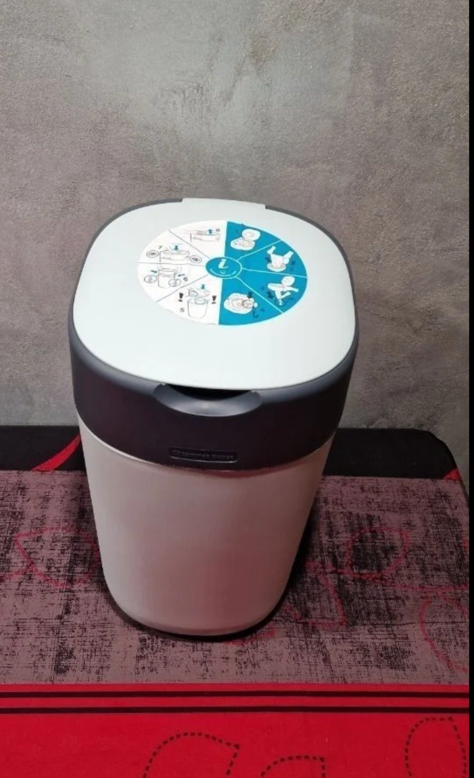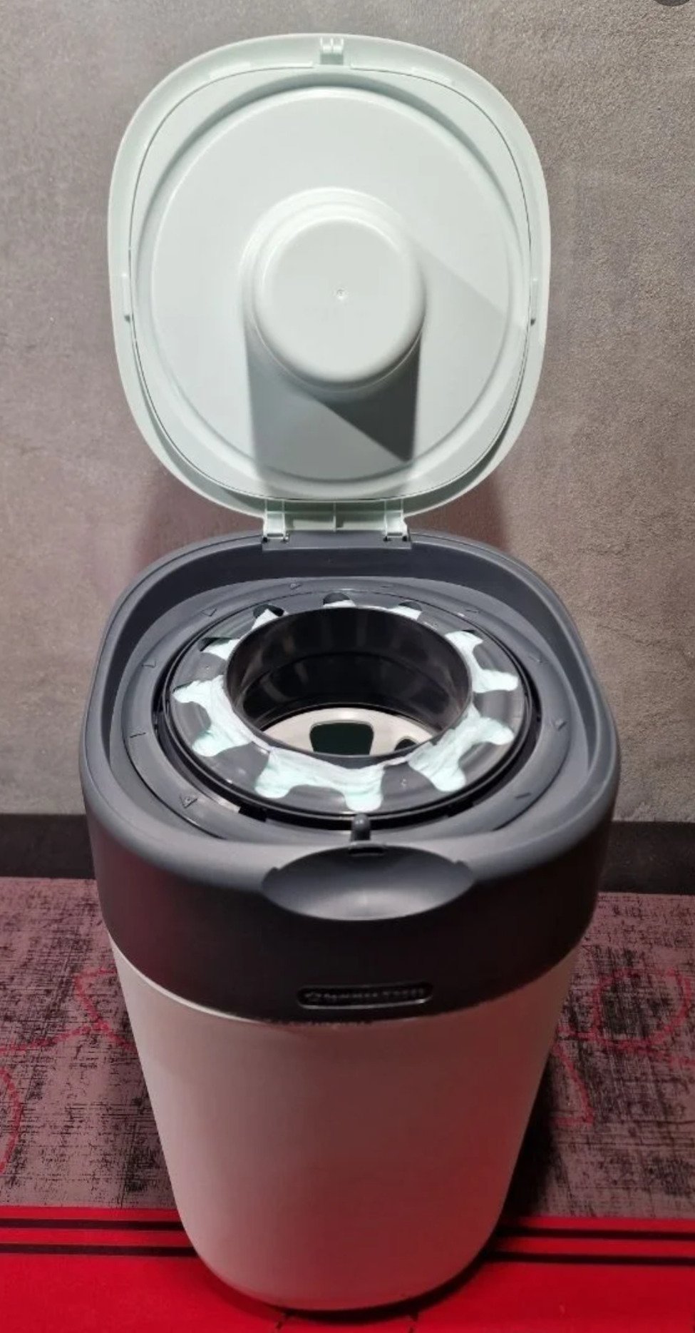 Es el único contenedor para pañales que gira y envuelve de forma individual cada pañal