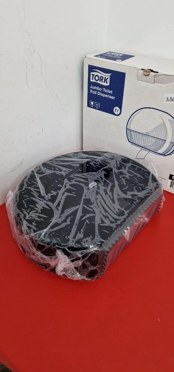 Tork 554008 Dispensador de papel higiénico Jumbo / Sistema T1 de papel higiénico Elevation / Negro Dimensiones: Alto 36 cm, Ancho 43,7 cm, Profundo 13,3 cm / Compatible con el sistema T1 / Negro