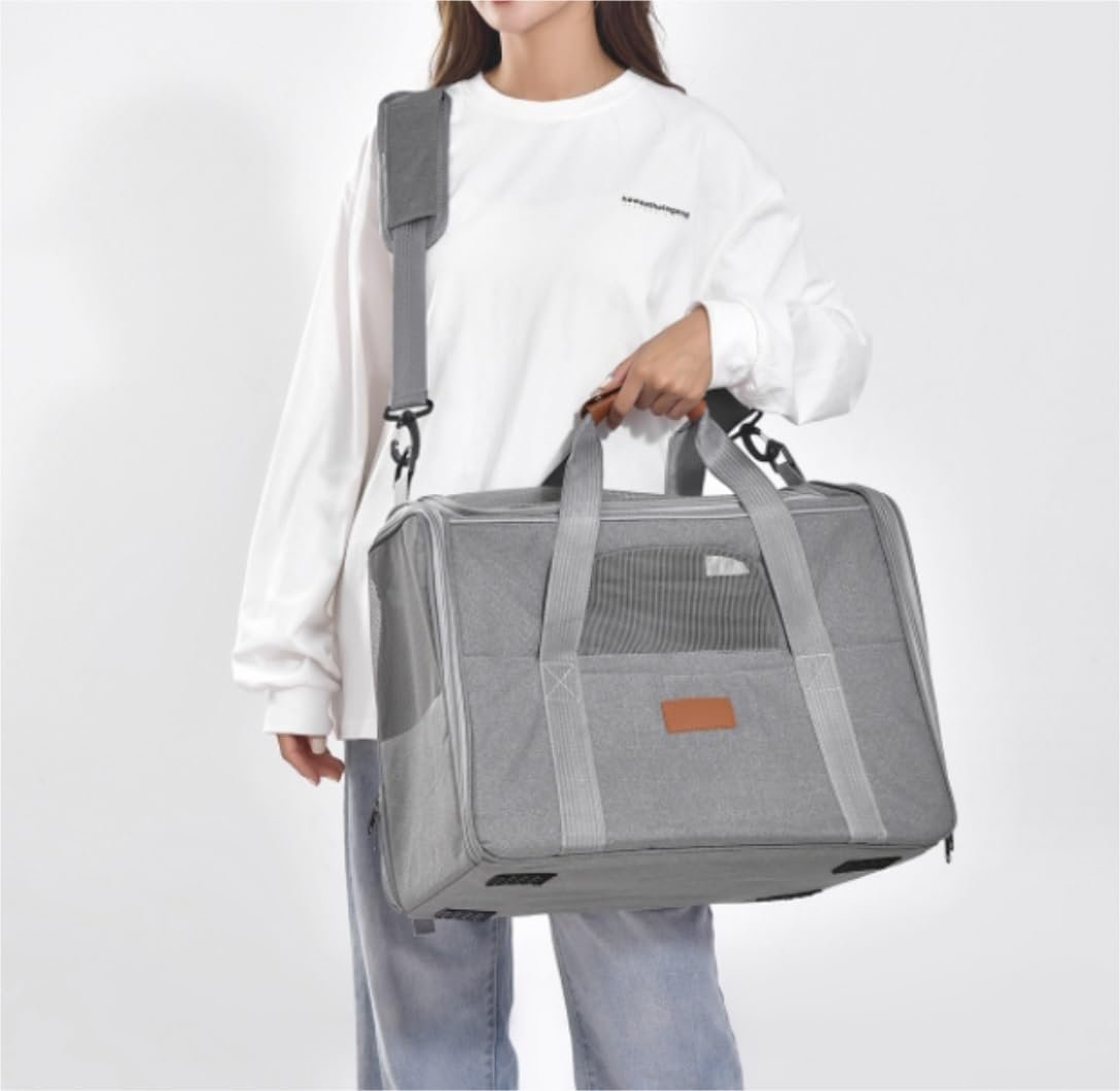 • Esta bolsa para transportar mascotas es fácil de transportar y almacenar, tiene una correa para el hombro y asas y la hace más conveniente para su viaje.