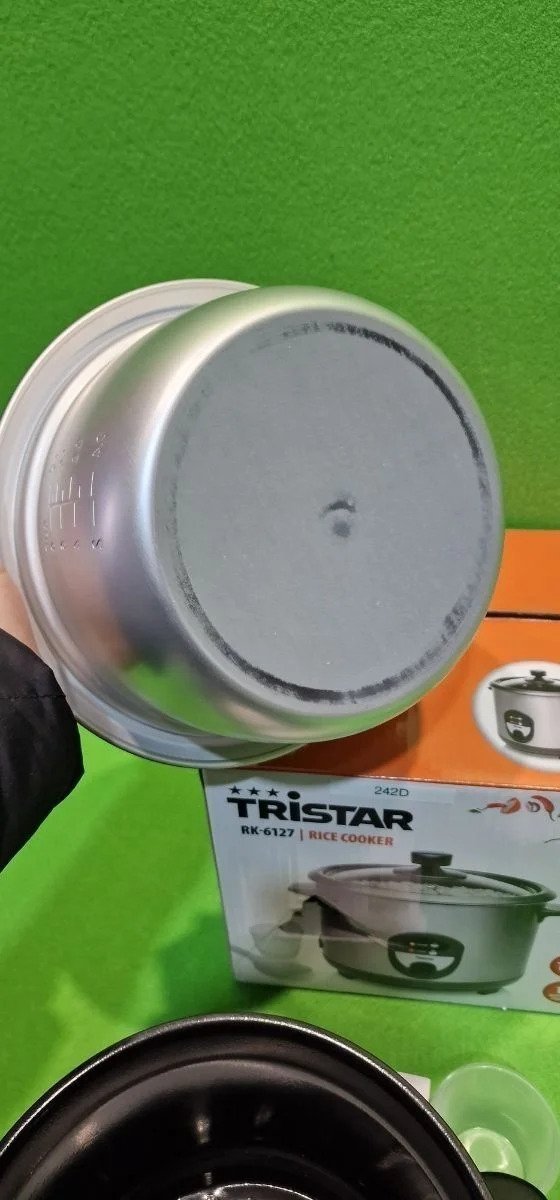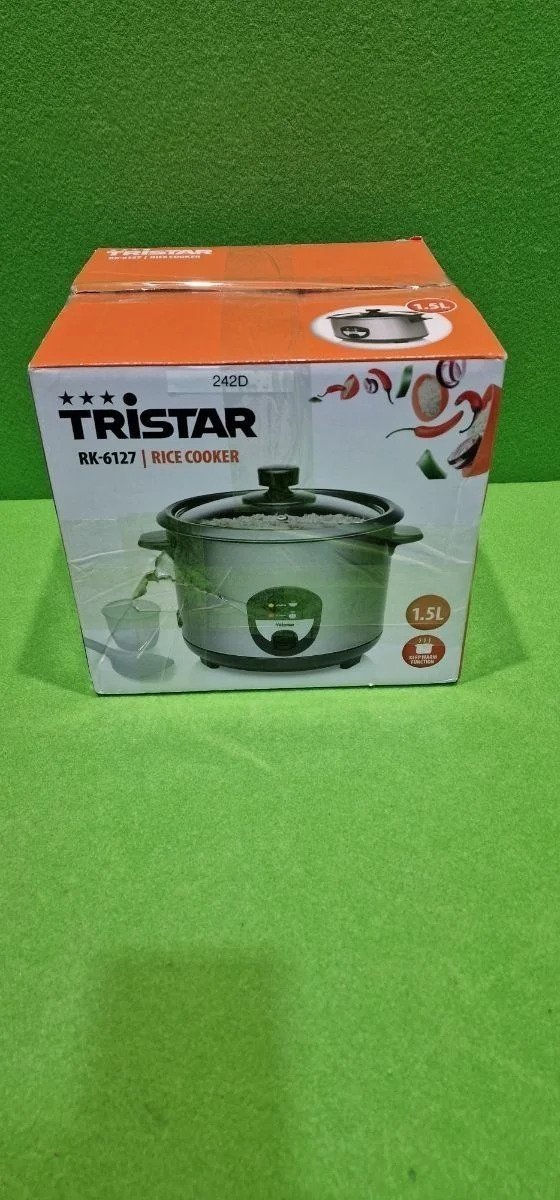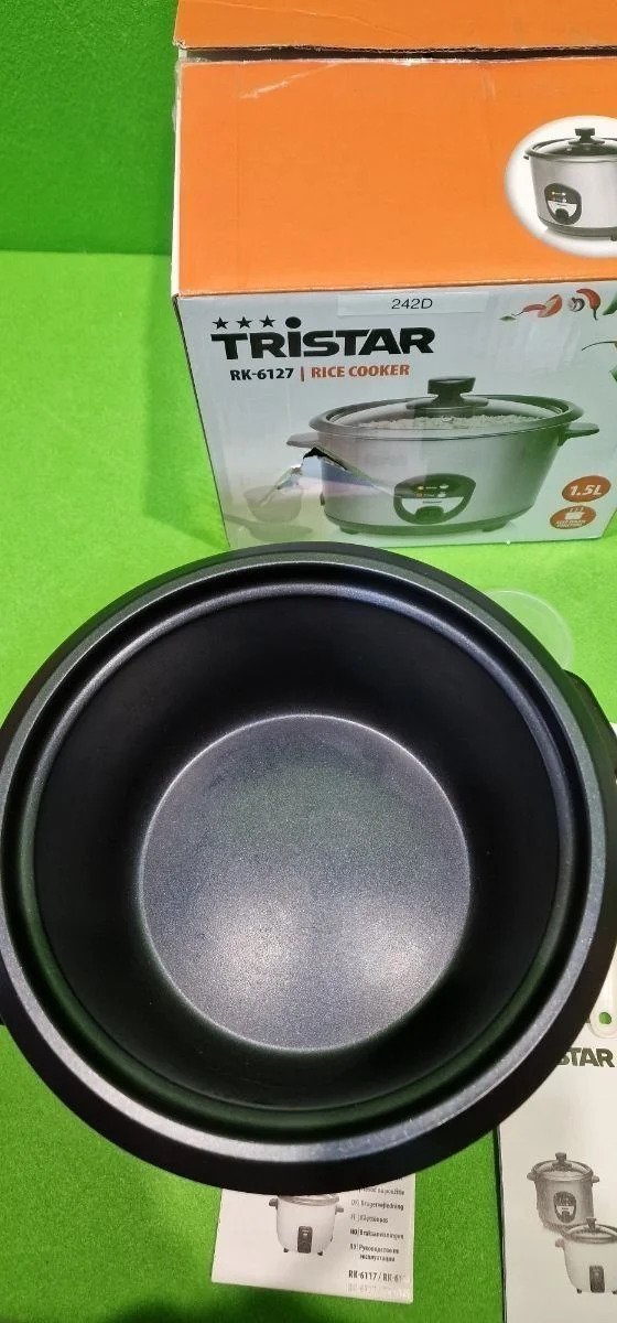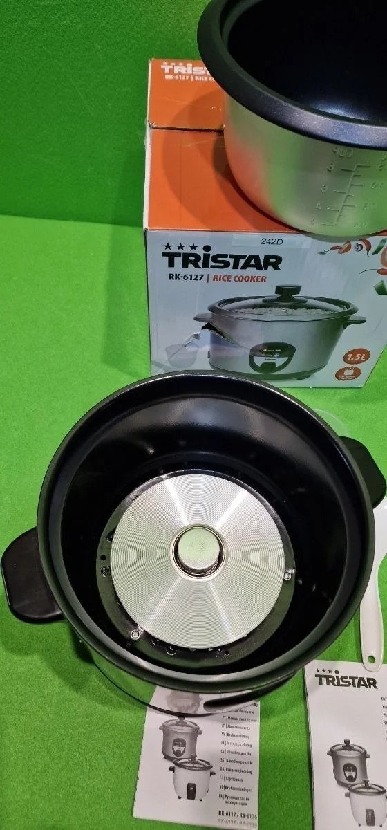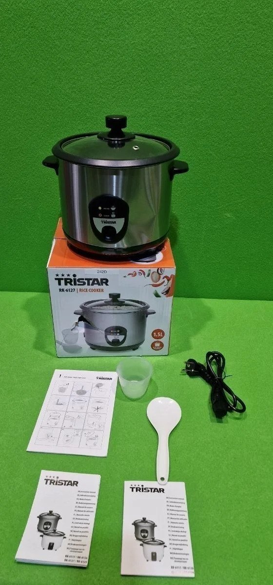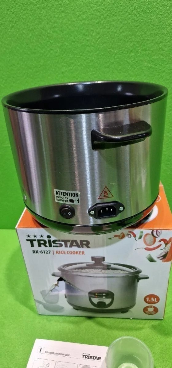 Tristar RK-6127 Arrocera, Capacidad 1.5 l, Función para Mantener el Calor, Apagado Automático, Incluye Taza Medidora, Espátula y Cuchara, revestimiento antiadherente del recipiente, 500 W, Plateado