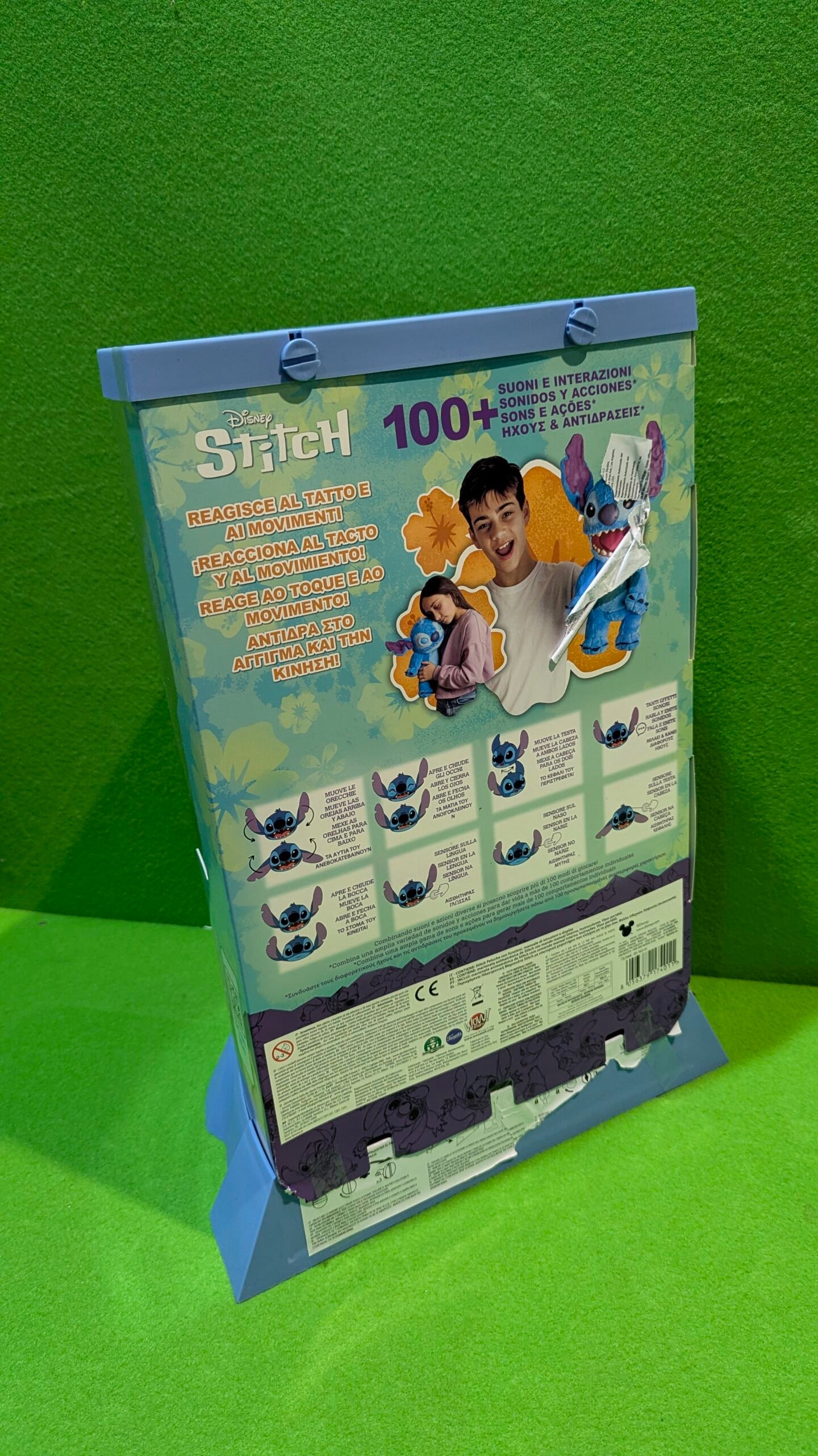 - 15 funciones y sonidos principales, pero combínalos en múltiples órdenes diferentes con los sonidos vocales únicos y el lenguaje de Stitch para crear 100 interacciones realistas