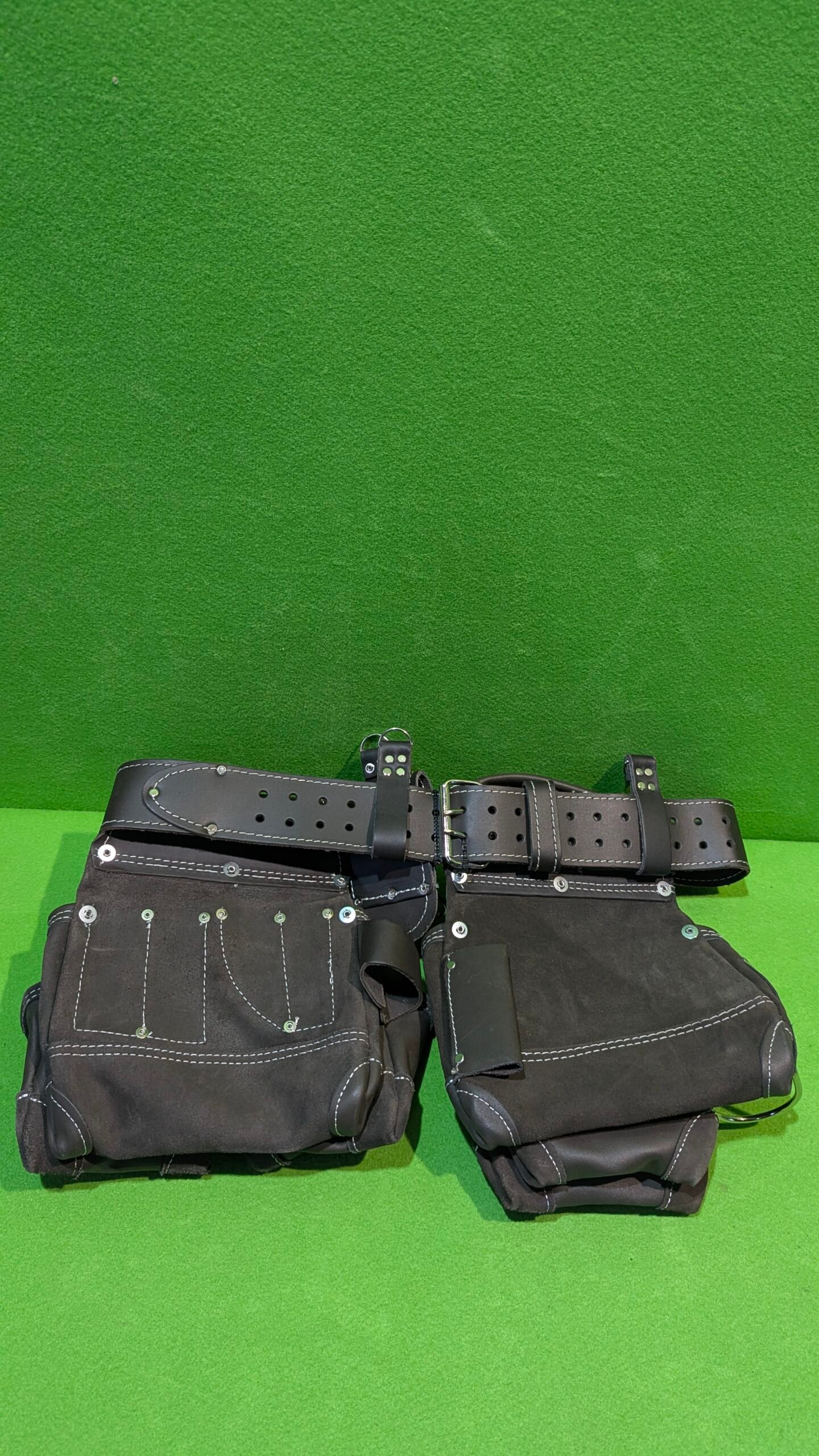 • Hecho de cuero curtido al aceite de alta calidad para una máxima durabilidad. Dos bolsas de gran capacidad, bolsillos adicionales de menor capacidad y dos soportes de metal para martillos significa que puedes llevar un montón de herramientas manuales en el lugar de trabajo