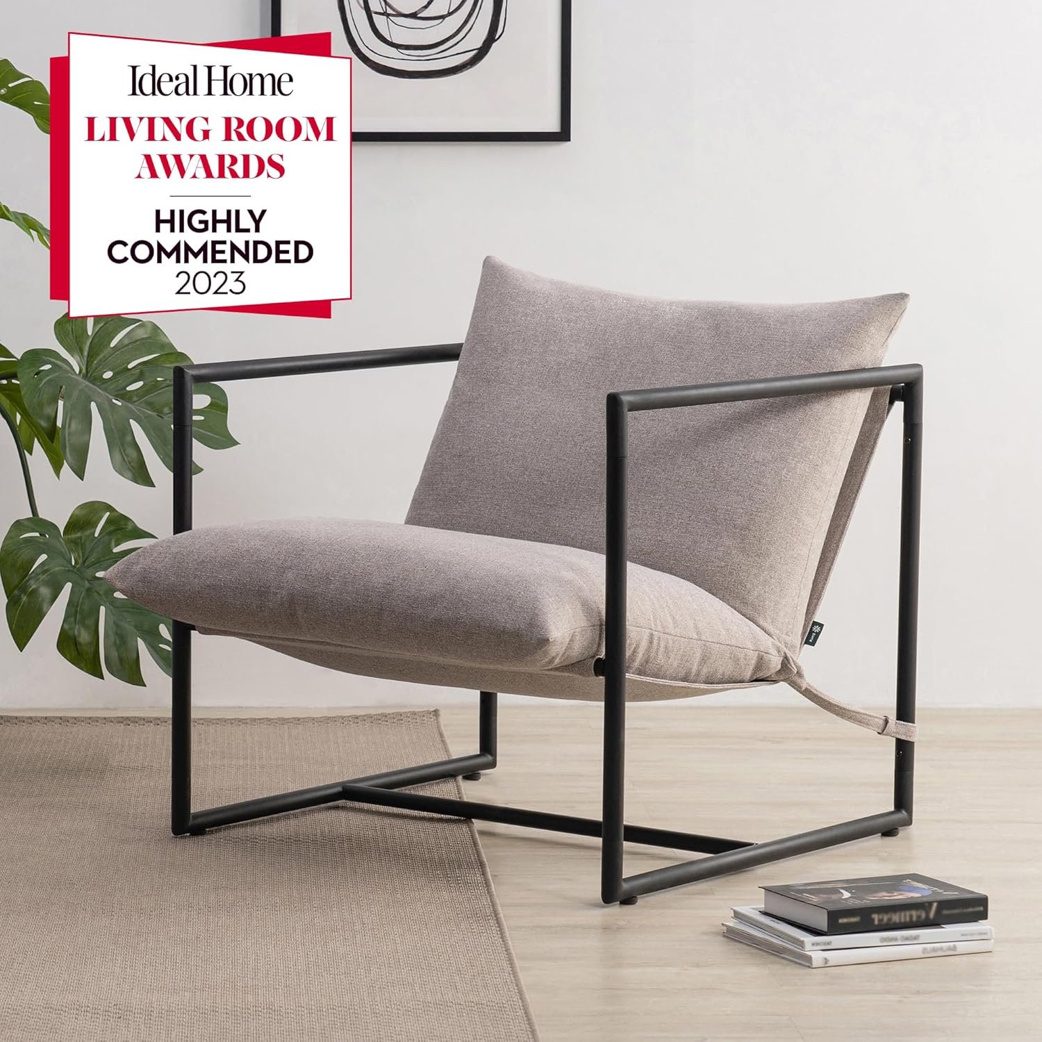Zinus Aidan Grande Silla Sling 78x69x78 – Sillón con estructura metálica y acolchado de espuma triturada – Beige claro